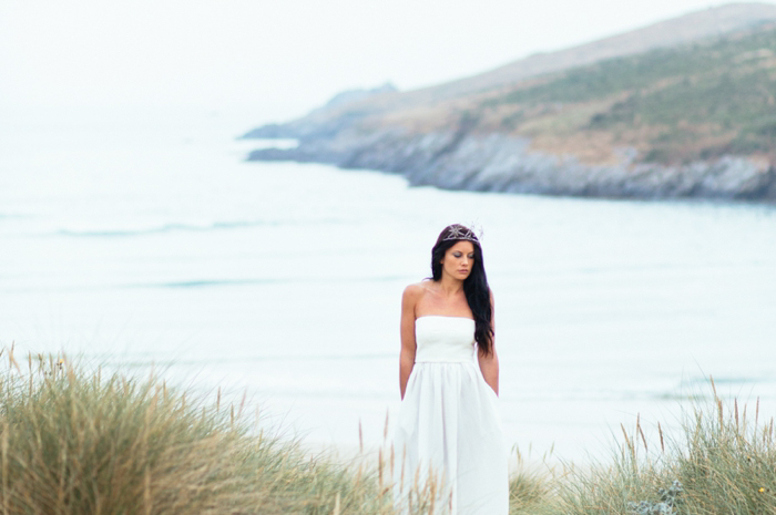 The dresses are all high-street designs: Mango, Warehouse and Aqua. The hair and make-up was provided by the lovely Amy Skinner of Amy Beauty and our model was the beautiful Jasmine. Modern jewellery touches were provided by Korp Jewellery of London, the stationery is from Lovely Paper Things based in California and the breath-taking florals by Susanne of The Blue Carrot , based on the Roseland Peninsula.