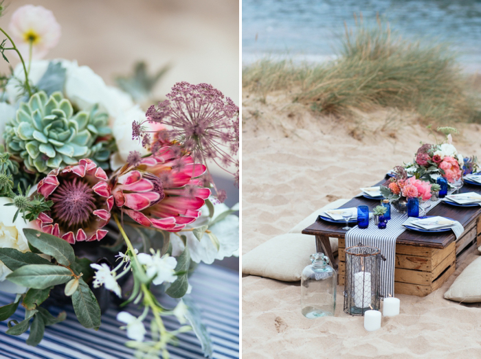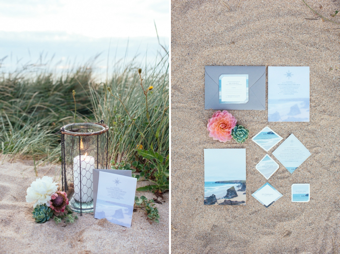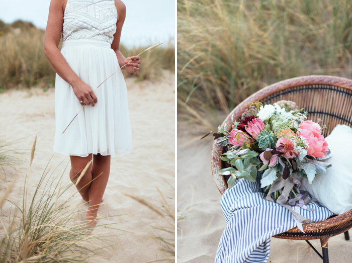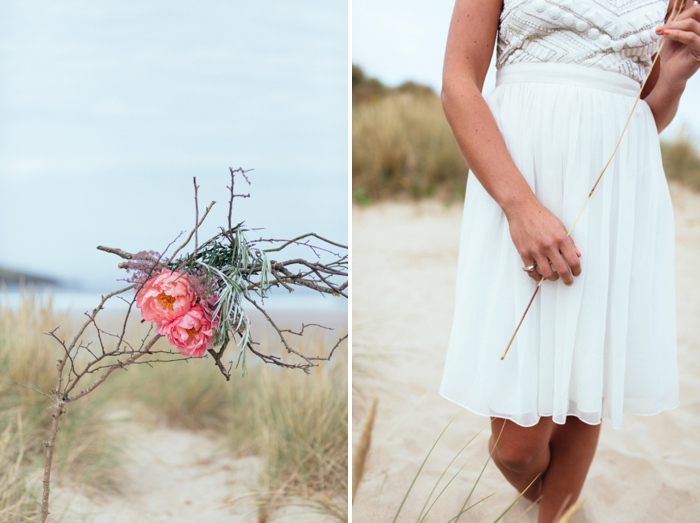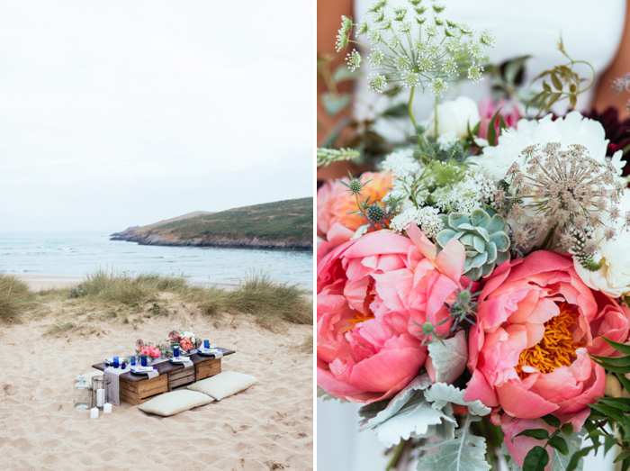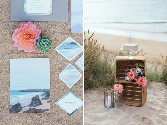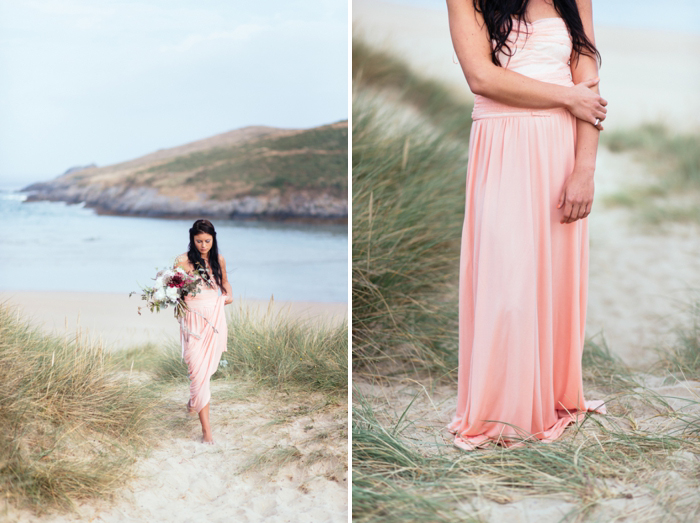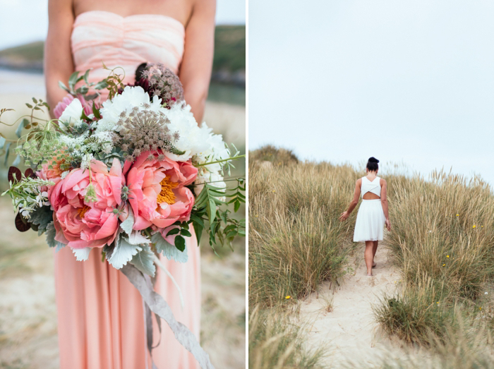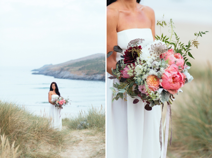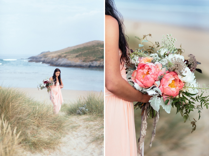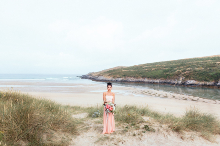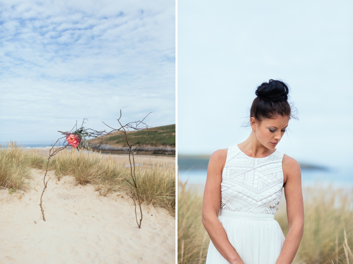 This shoot took place last July on a calm summer’s morning, there were five of us on the beach by 7am with coffees in hand and a light and empty surf rolling in on Crantock Beach. The concept behind the shoot was to offer up a fresh and stripped back alternative to beach wedding styling. I photograph a lot of weddings in Devon and Cornwall with a seaside influence and wanted to inspire brides about how to plan a wedding which nods to coastal influences in a more contemporary way.